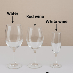 In fine dining, glasses are placed in order of use and size. Knowing which one to take avoids confusion.