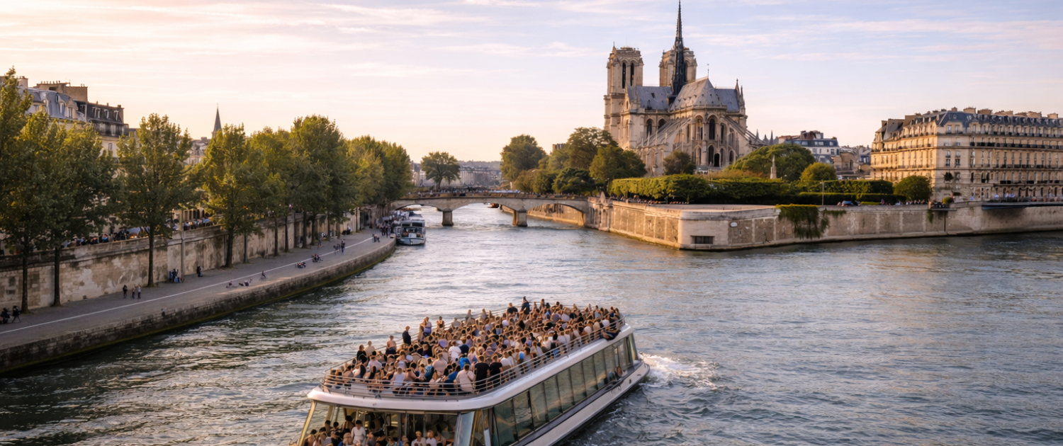 This Seine river cruise highlights iconic monuments such as Notre-Dame, the Louvre, the Eiffel Tower, and historic Parisian bridges. The slow pace of the cruise creates a calm and enjoyable experience, ideal for first-time visitors and families alike. Sightseeing cruises are designed to offer clear views and a comfortable way to explore the city without walking long distances.
