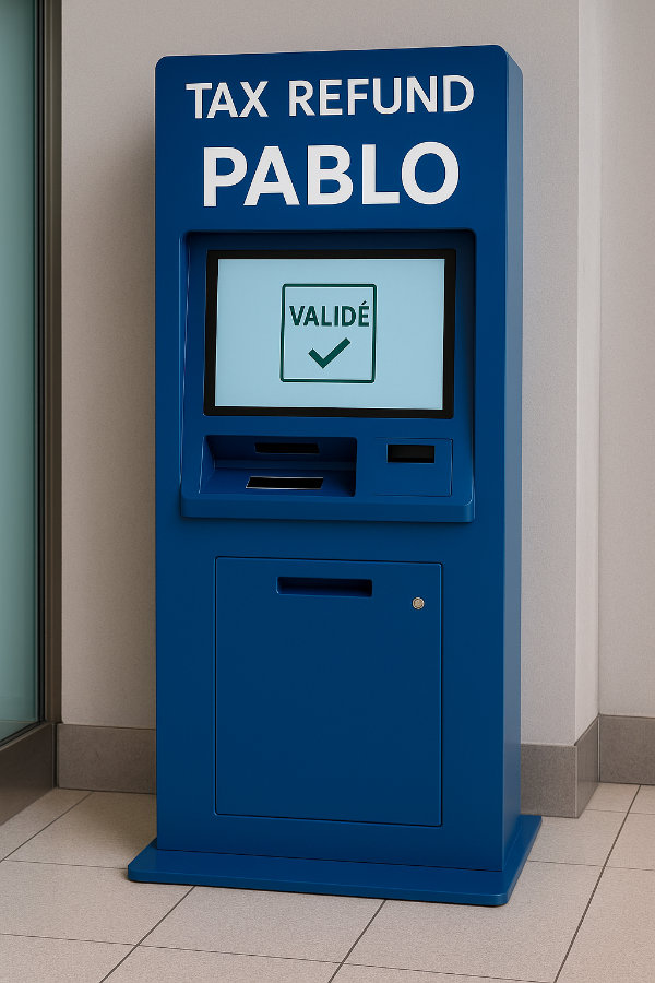 It is strongly recommended to arrive early at the airport or train station in order to locate the PABLO terminalsand validate your VAT refund forms without rushing. PABLO terminals are generally located near customs counters, but their exact location may vary depending on the terminal or station.